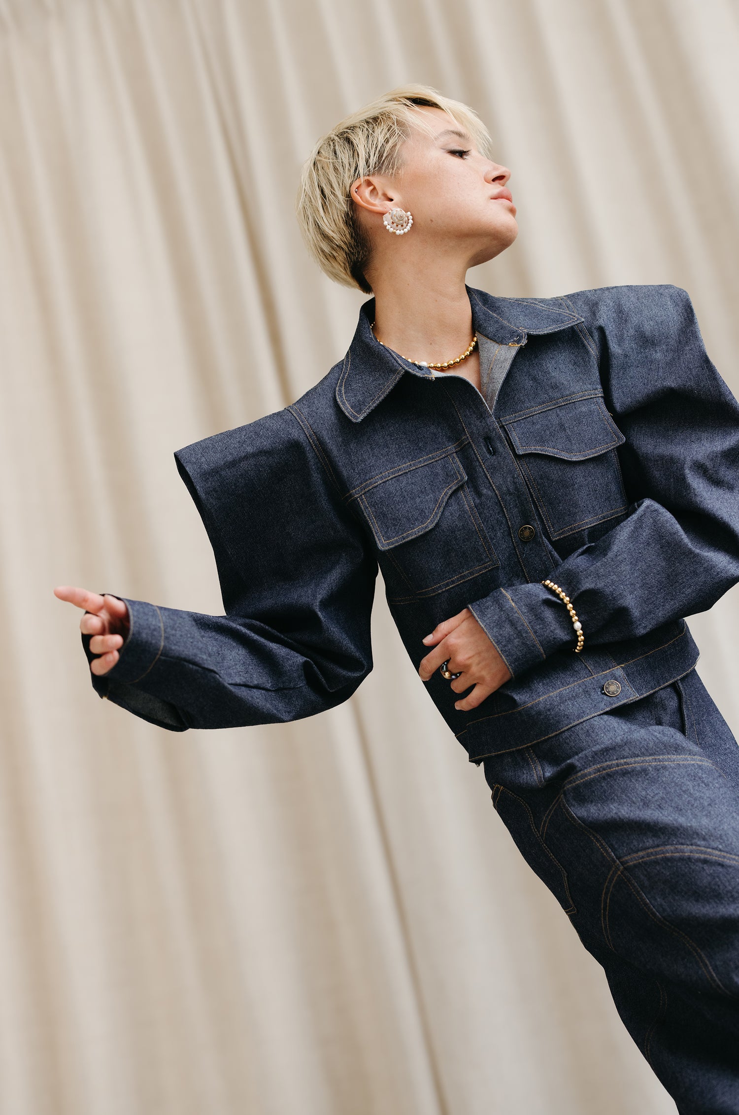 Imaginée et confectionnée dans l'atelier parisien de Louise Marcaud, la veste SONORA allie structure et féminité. Sa découpe audacieuse, son rabat déstructuré et ses manches bouffantes en font une pièce forte à porter au quotidien. Elle incarne l’équilibre parfait entre confort, modernité et artisanat.