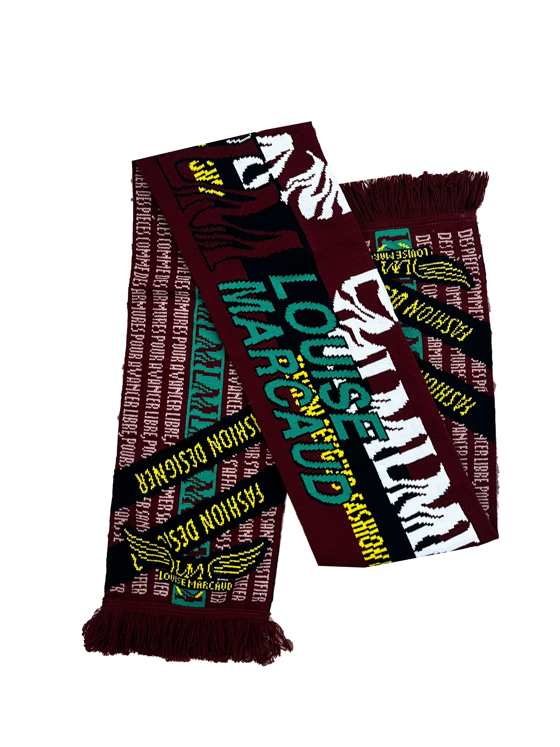 L'écharpe LM Racing est une pièce emblématique qui concentre toute l'identité graphique de la collection. Ses motifs audacieux et ses couleurs contrastées en font bien plus qu'un simple accessoire : c'est un véritable statement piece. Elle se porte enroulée façon capuche pour un look protecteur et mystérieux, nouée autour du cou en mode classique, ou drapée sur les épaules comme un châle pour ajouter de la structure à une silhouette minimaliste. Parfaite pour rehausser un total look noir ou pour dialoguer avec les autres pièces imprimées de la collection.